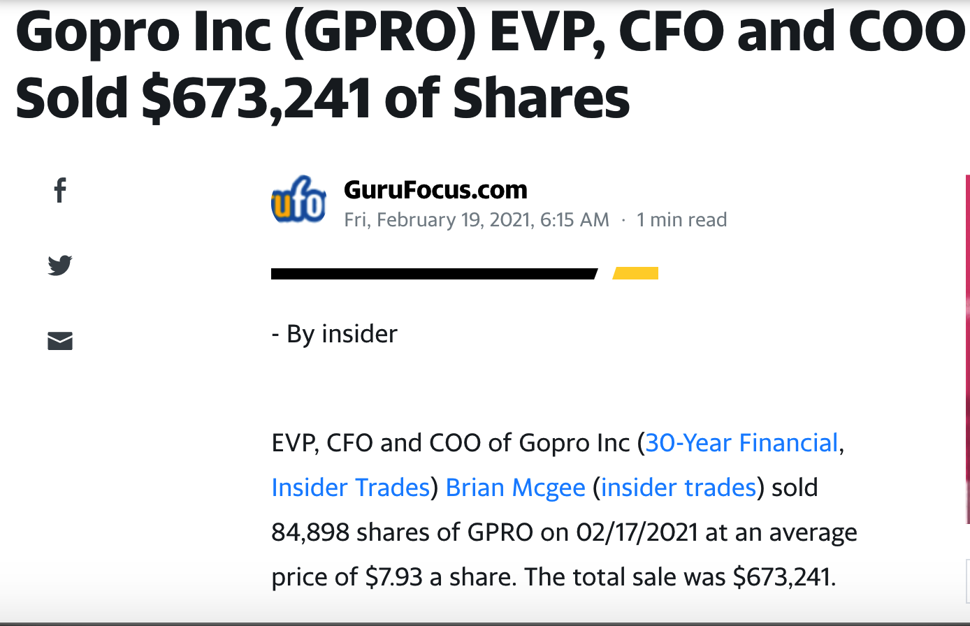 簡單的說就是GPRO的高層CFO兼COO Brian Mcgee賣了手上GPRO84,898股,約 67萬美金的股票部位,價位在7.93美金。